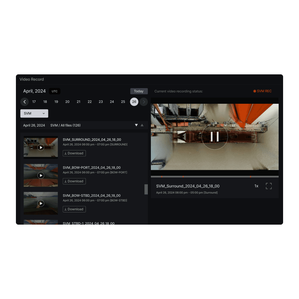 HiNAS SVM stores recorded Surround View and Side View footage for up to 30 days, enabling playback review and operational analysis. - HiNAS Navigtaion (Camera-based navigation assistant system) - HiNAS Control (AI-based autonomous navigation system) - HiNAS SVM (Surrounding View Monitoring) These products primarily help ensure safe navigation for crews on board and serve as core data sources for HiNAS Cloud, enabling real-time transmission and analysis of onboard activities from shore-based office. If you have any questions about installation, or would like to explore which solutions best fit your fleet, please contact our sales team. We're here to help you find the right configuration for your operational needs.